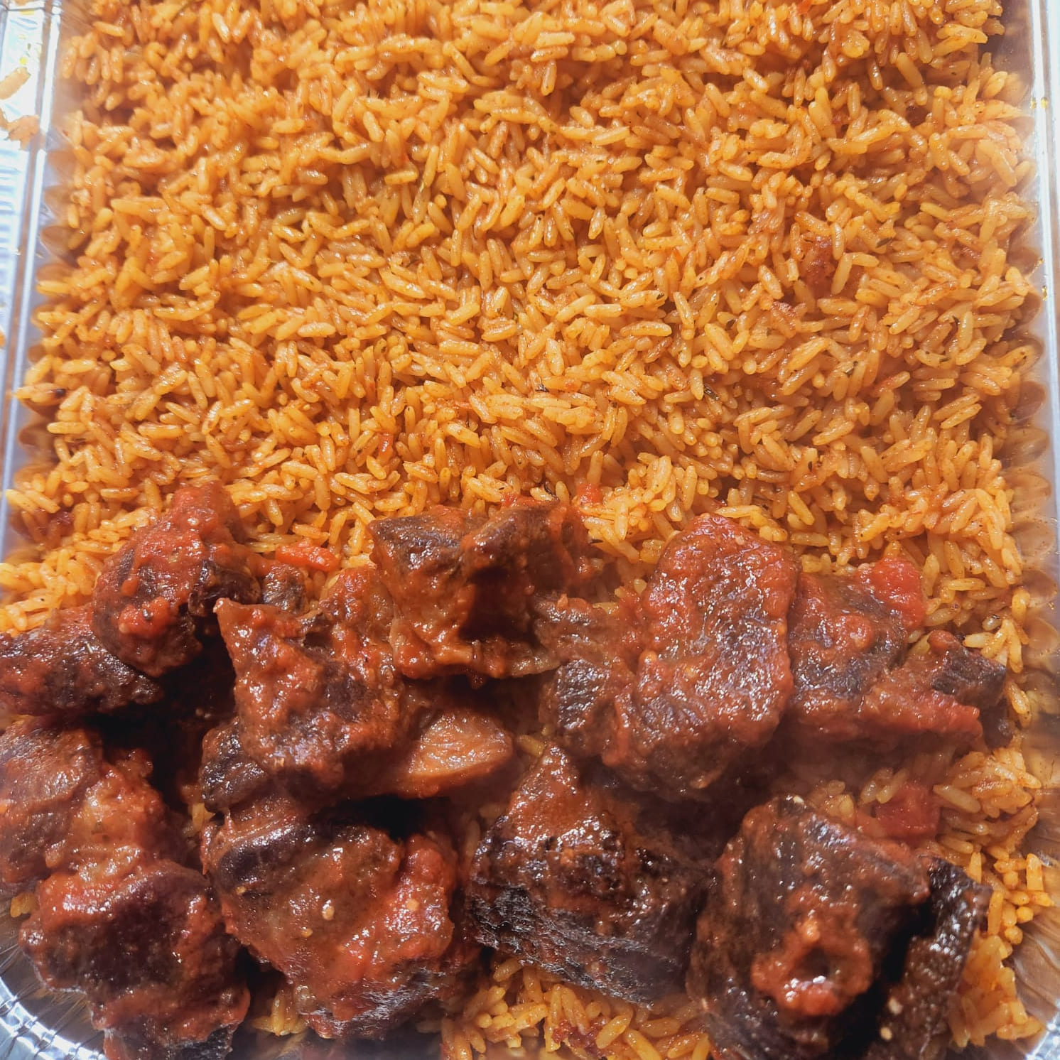 Combo Jollof/Stewed Beef! Chicken/Turkey (Half Pan)